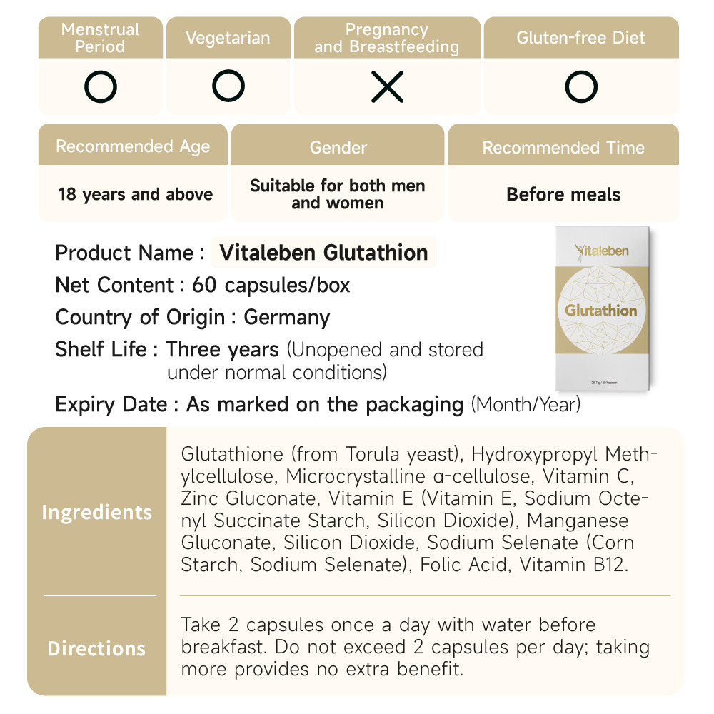 Vitaleben Dietary supplement with 250 mg reduced L-glutathione